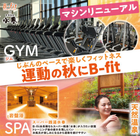 B-fit会員様は、会員種別に応じて天然温泉「鶴見緑地湯元水春」を無料でご利用いただけます。 運動の後は、人気のロウリュウサウナをはじめ、解放感抜群の展望温泉に炭酸泉など13種類のアトラクション風呂にてお寛ぎください。