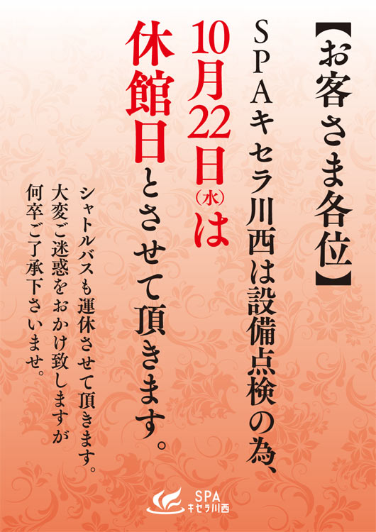 10月22日は休館日です。2025.10.15休館日のお知らせ10月22日(水)は、設備点検のため休館日とさせていただきます。 ご迷惑をお掛け致しますが、何卒ご了承くださいませ。 2025年10月13日の特別レッスンプログラム 前の記事
