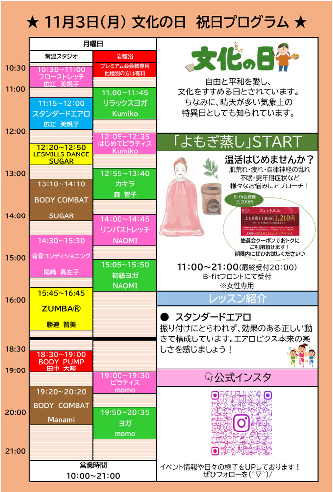 2025年11月3日(祝・月)の特別レッスンプログラムです。 皆様のご参加お待ちしております。