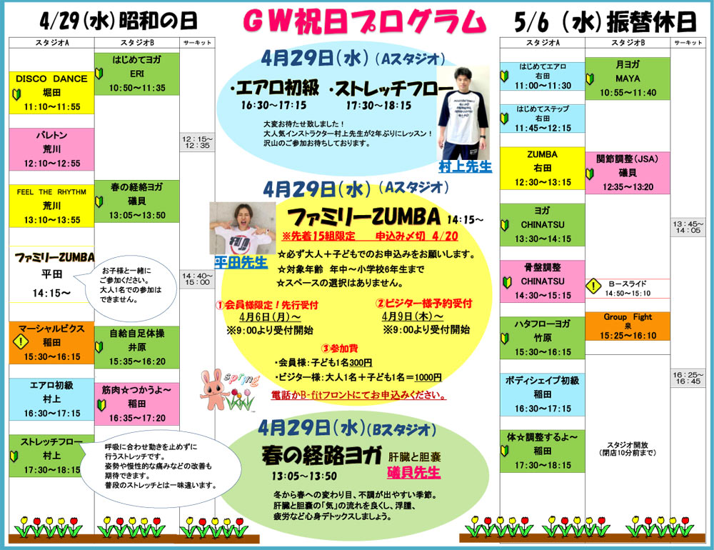 2026年4月29日、5月6日の特別レッスンプログラムのご案内です。