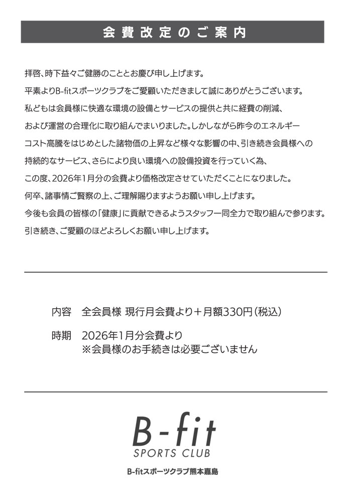 会費改定のお知らせ