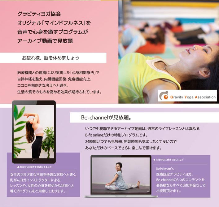 ストレッチ、ヨガ、筋トレ、ダンス、格闘系など豊富なプログラム。受け放題だから毎日受講もできるし、