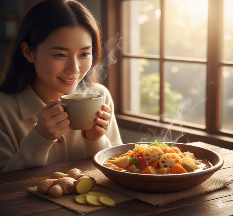 生姜(ショウガ)の活用: 生のショウガよりも、加熱・乾燥させたショウガの方が芯から体を温める「ショウガオール」が豊富です。スープや紅茶に足してみましょう。