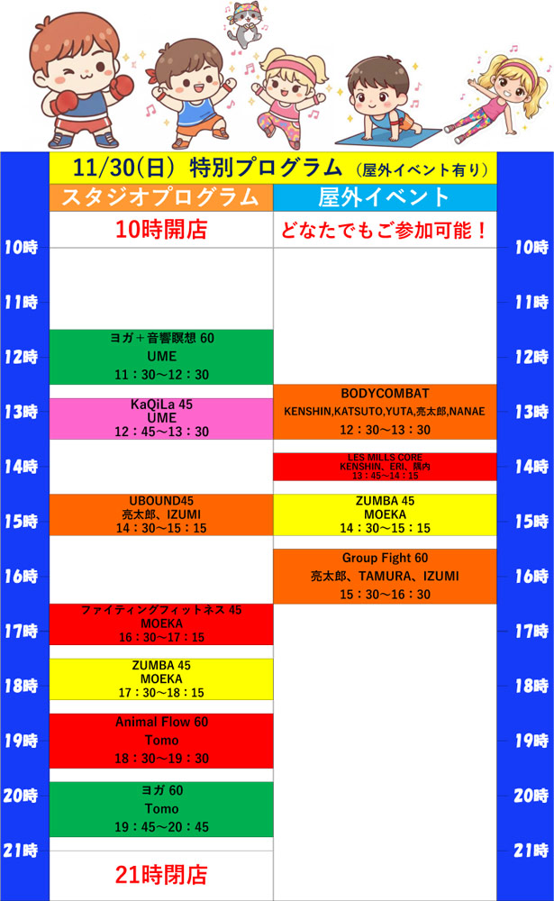 2025年11月30日の特別レッスンプログラム2025.11.172025年11月30日(日)の特別レッスンプログラムです。 屋外イベントも有り! 皆様のご参加お待ちしております。 2025年11月24日の特別レッスンプログラム 前の記事