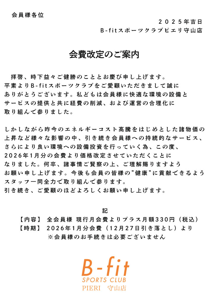 2026年1月分会費(12月20日決済・27日引き落とし)より