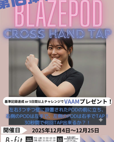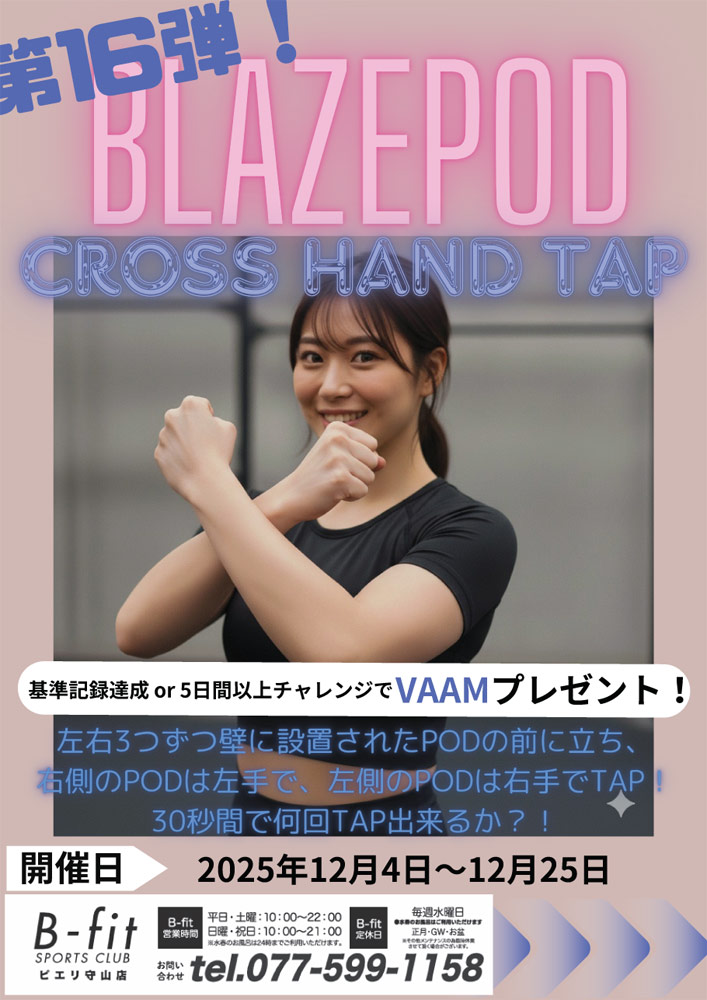 BLAZEPODイベント第16弾2025.12.1おすすめ記事 2025年12月4日~12月25日 BLAZEPODイベント第16弾 「CROSS HAND TAPチャレンジ」反射神経・動体視力を駆使してスピーディーに! ・会員様ならどなたでもチャレンジ可能です🎶 ・基準記録達成or 5日間以上チャレンジで、VAAMプレゼント! お気軽にスタッフへお問い合わせください👍 Post Share Hatena Pocket RSS feedly Pin it