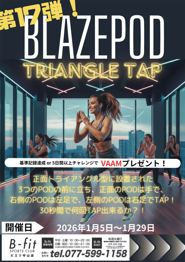 BLAZEPODイベント第17弾2026.01.4おすすめ記事 2026年1月5日~1月29日 BLAZEPODイベント第17弾 「TRIANGLE Tapチャレンジ」反射神経・動体視力を駆使してスピーディーに! ・会員様ならどなたでもチャレンジ可能です🎶 ・基準記録達成or 5日間以上チャレンジで、VAAMプレゼント! お気軽にスタッフへお問い合わせください👍 Post Share Hatena Pocket RSS feedly Pin it